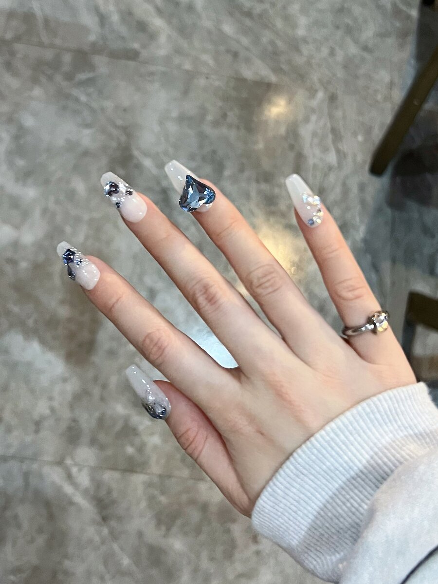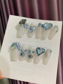 10 pièces long Cercueil 3D À Détail Cœur Faux Ongles & 1 feuille Ruban
