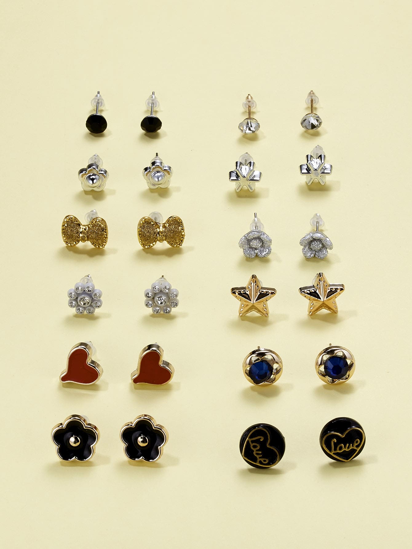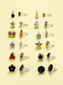 12 paires Clous d'oreilles design fleur