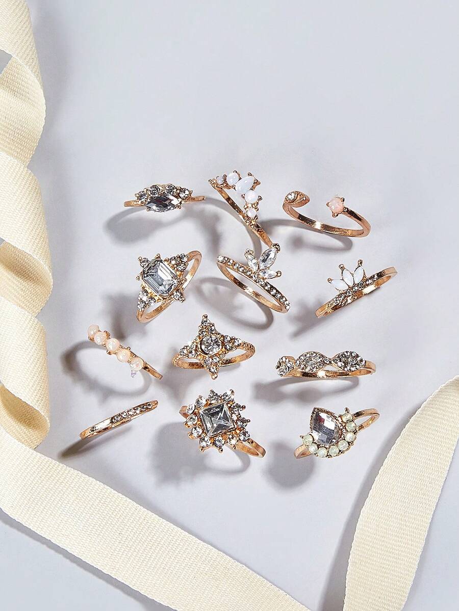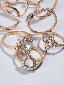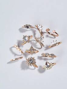 12 pièces Anneau Glamour En Alliage De Zinc Avec Strass Pour Femme Pour Décoration Quotidienne
