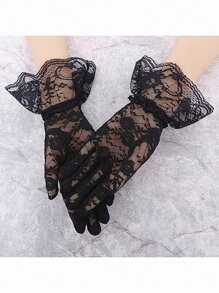 1 paire de gants élégants et élégants en dentelle blanche à doigts complets pour femmes, pour mariage, banquet, fête