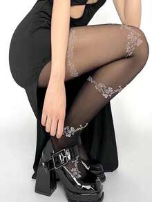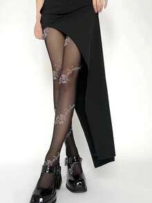 Femme 1 paire Collants à motif fleur mode pour quotidien