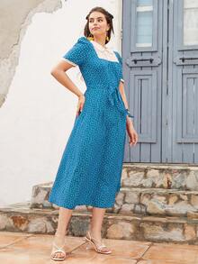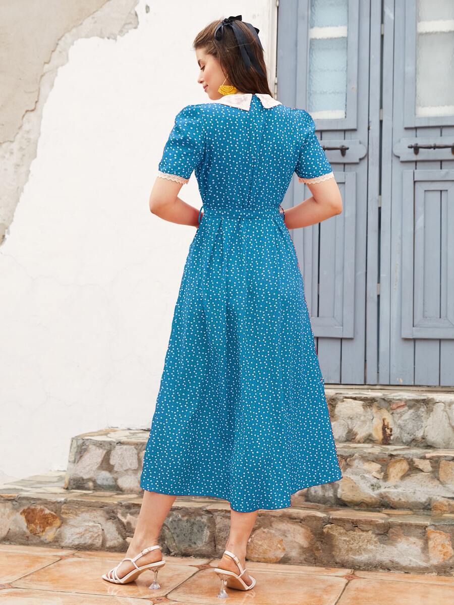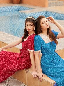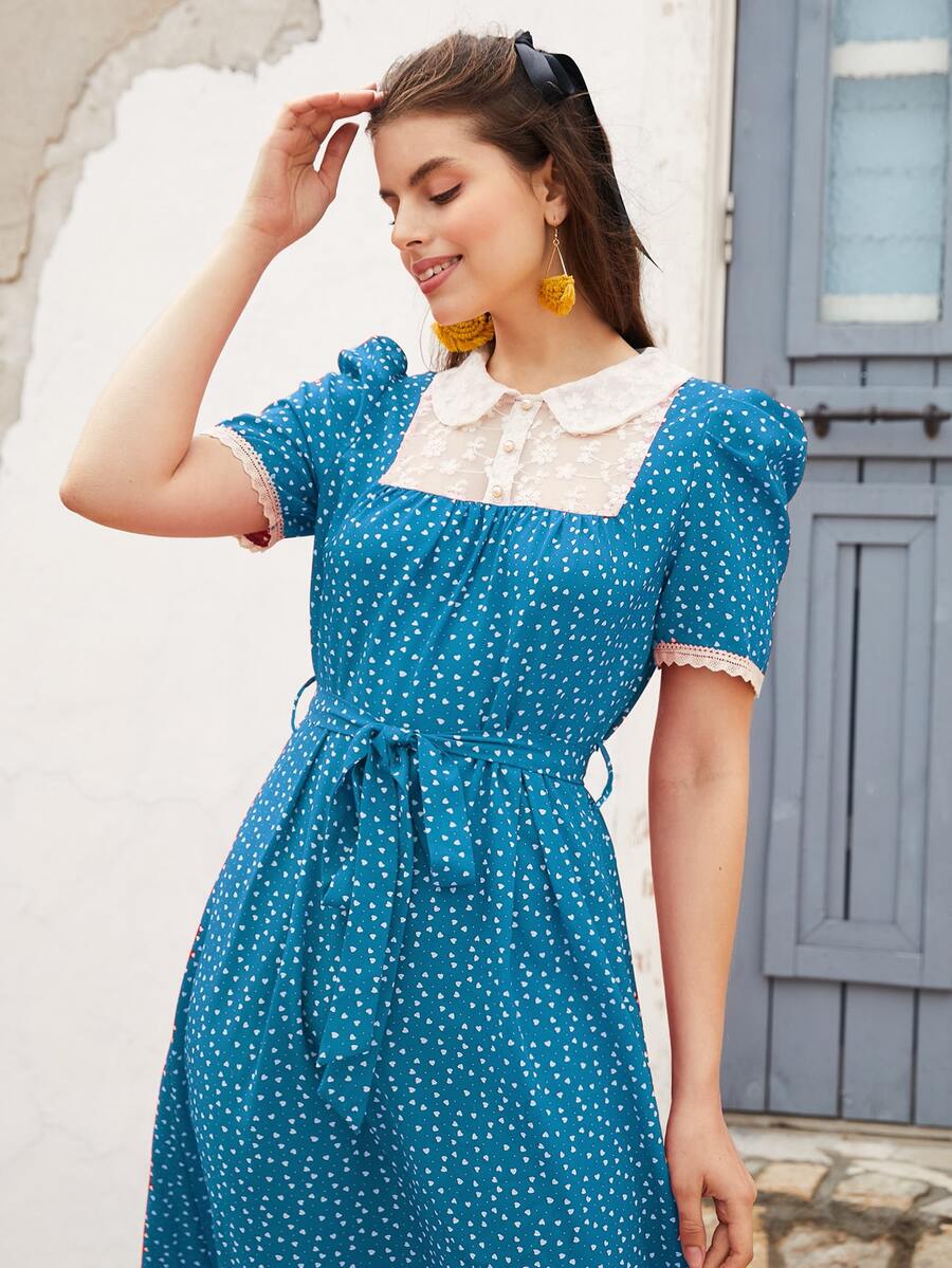 1 pièce Robe trapèze col claudine à imprimé cœurs sur tout
