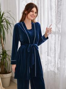 1 pièce Peignoir en velours avec ceinture et piqûre
