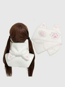 1 pièce Jolie écharpe blanche simple en peluche douce style Kawaii avec oreilles de chat, convient pour l'anime, le campus, le style casual