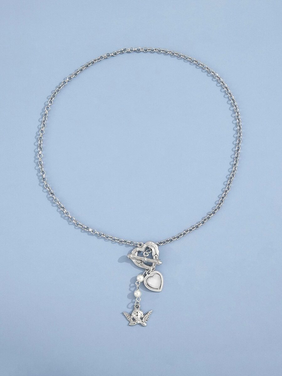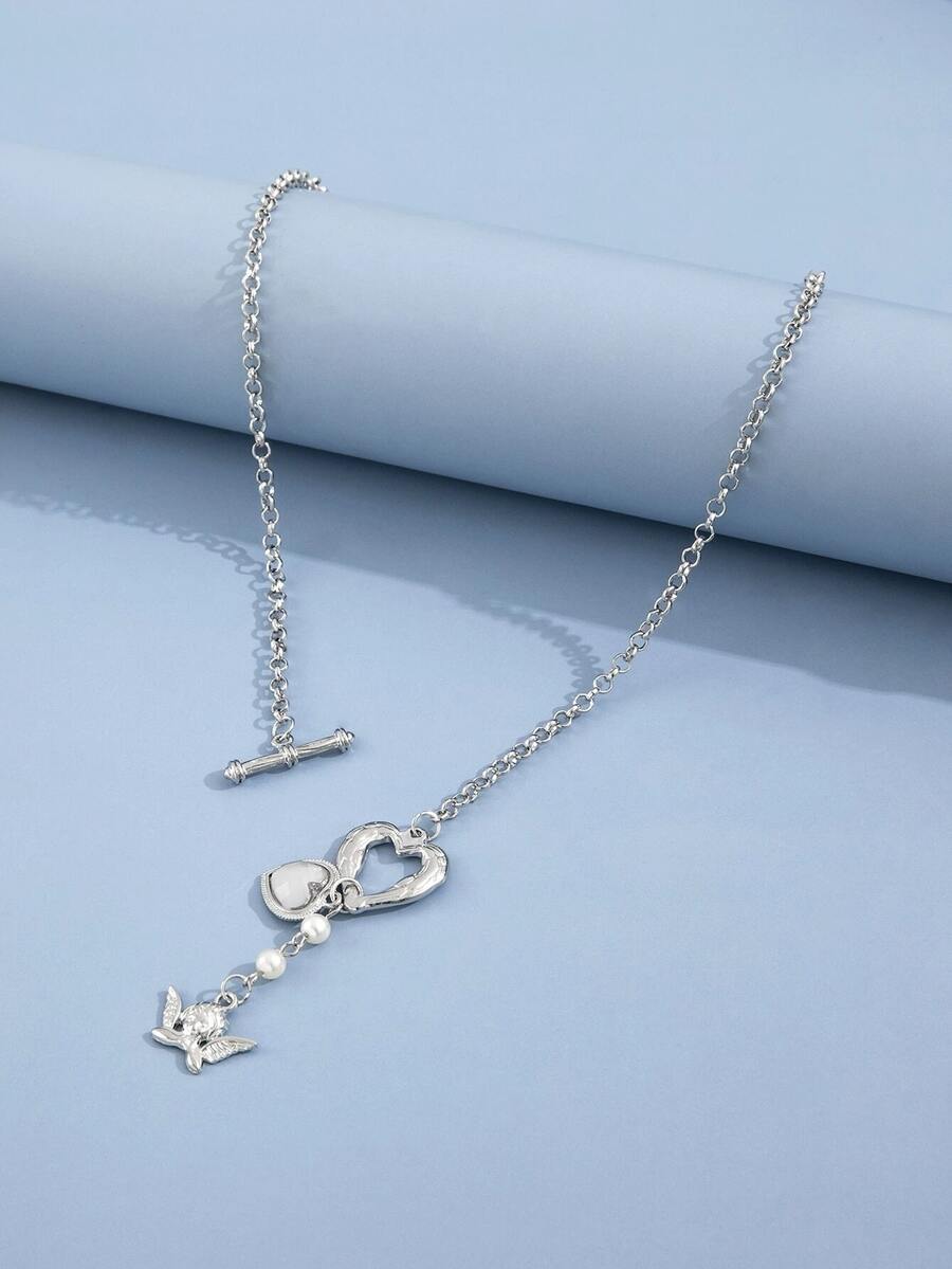 1 pièce Collier À La Mode En Alliage De Zinc Fausse Perle & Ange Breloque Boucle Pour Femme Pour Décoration Quotidienne