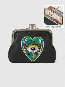 1 pièce Portefeuille court en cuir PU de style gothique avec perles, œil bleu et cœur rouge pour femmes