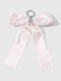 Kawaii 1 pièce Porte-clés pendentif de sac en ruban à nœud blanc à pois roses en cristal de perle fausse de haute qualité, délicate et mignonne. Convient pour le port quotidien des femmes et des filles, cadeau pour les festivals
