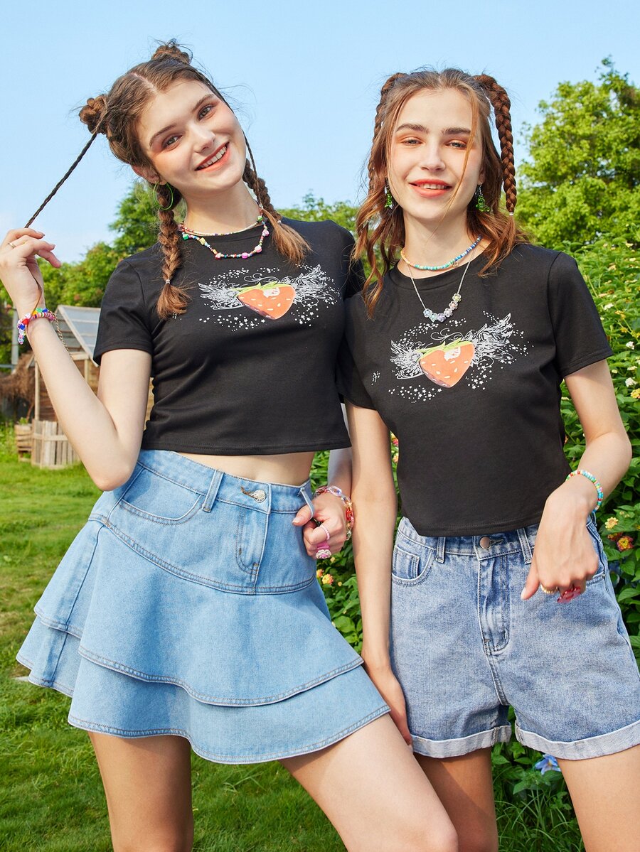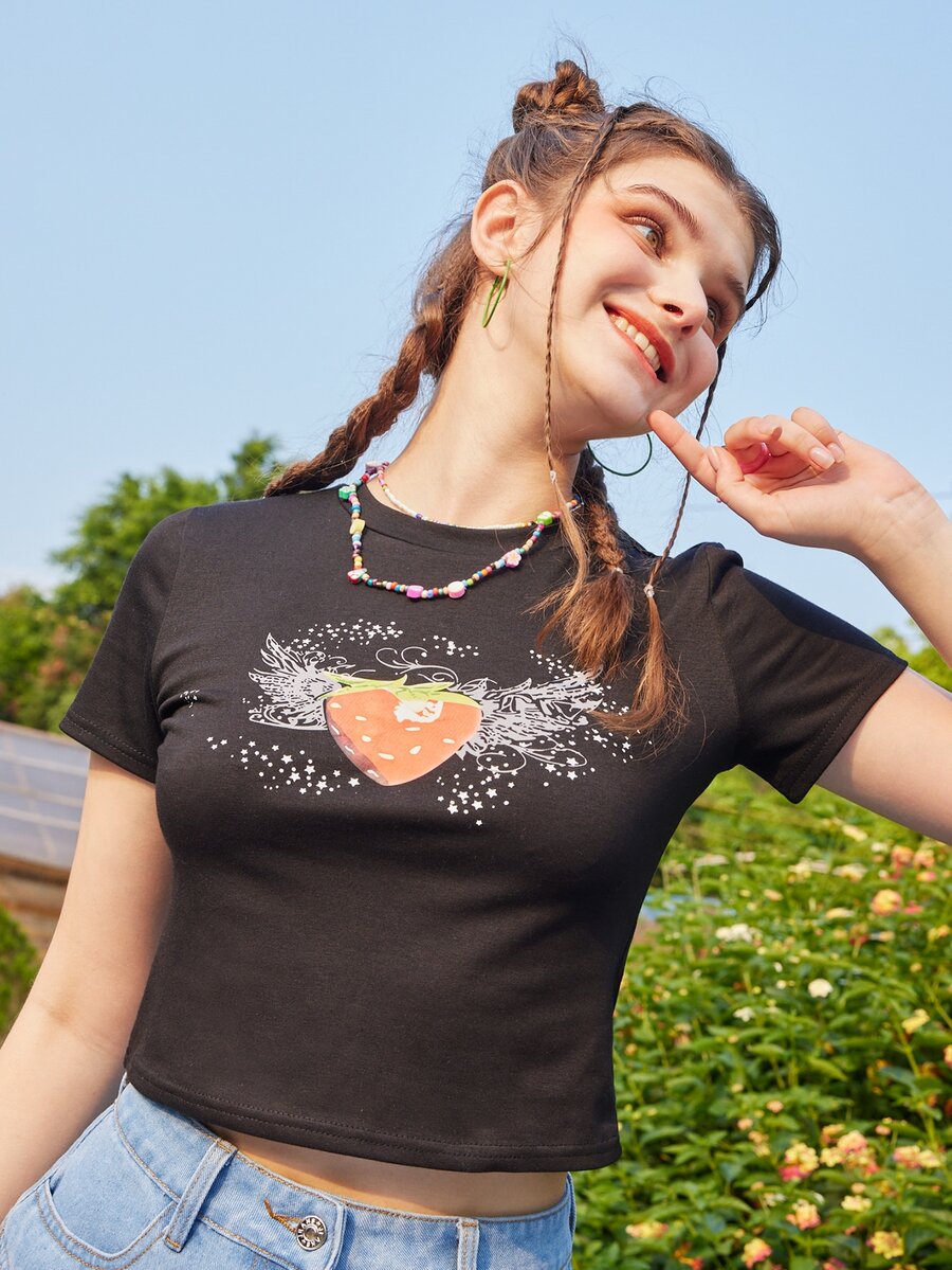 1 pièce T-shirt à imprimé fraise