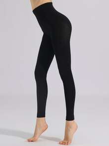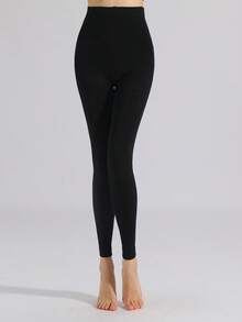 1 pièce Collants courts et élastiques pour femmes, de couleur unie et à la mode avec doublure thermique 1200D