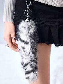 Goth 1 pièce Queue d'animal en fausse fourrure style Y2K rétro élégant, décontracté et doux. Dégradé noir et blanc, imprimé léopard, rayé, zébré. Porte-clés, charm de sac, convient pour le cosplay, le port quotidien des femmes, cadeau de vacances