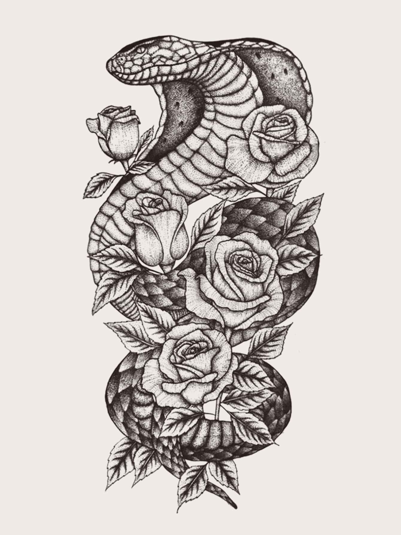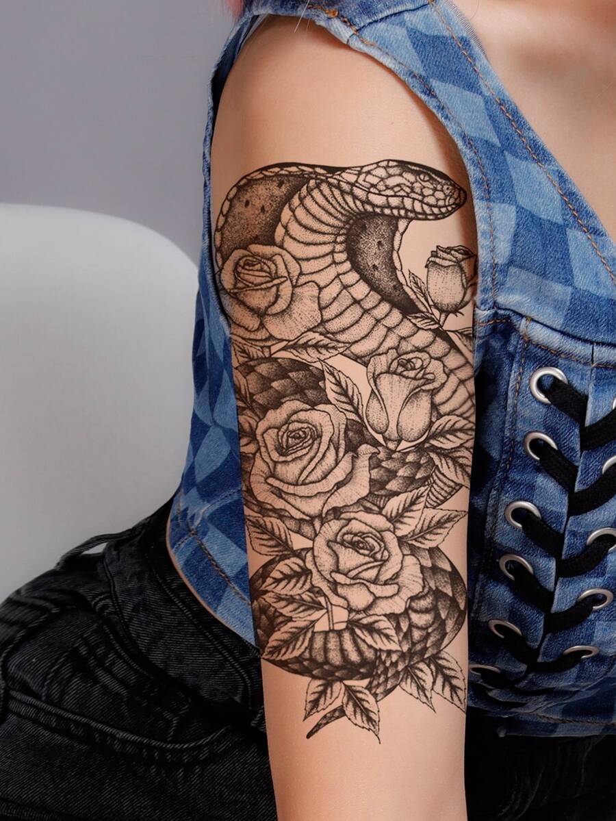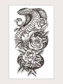 1 feuille Sticker de tatouages serpent & fleuri