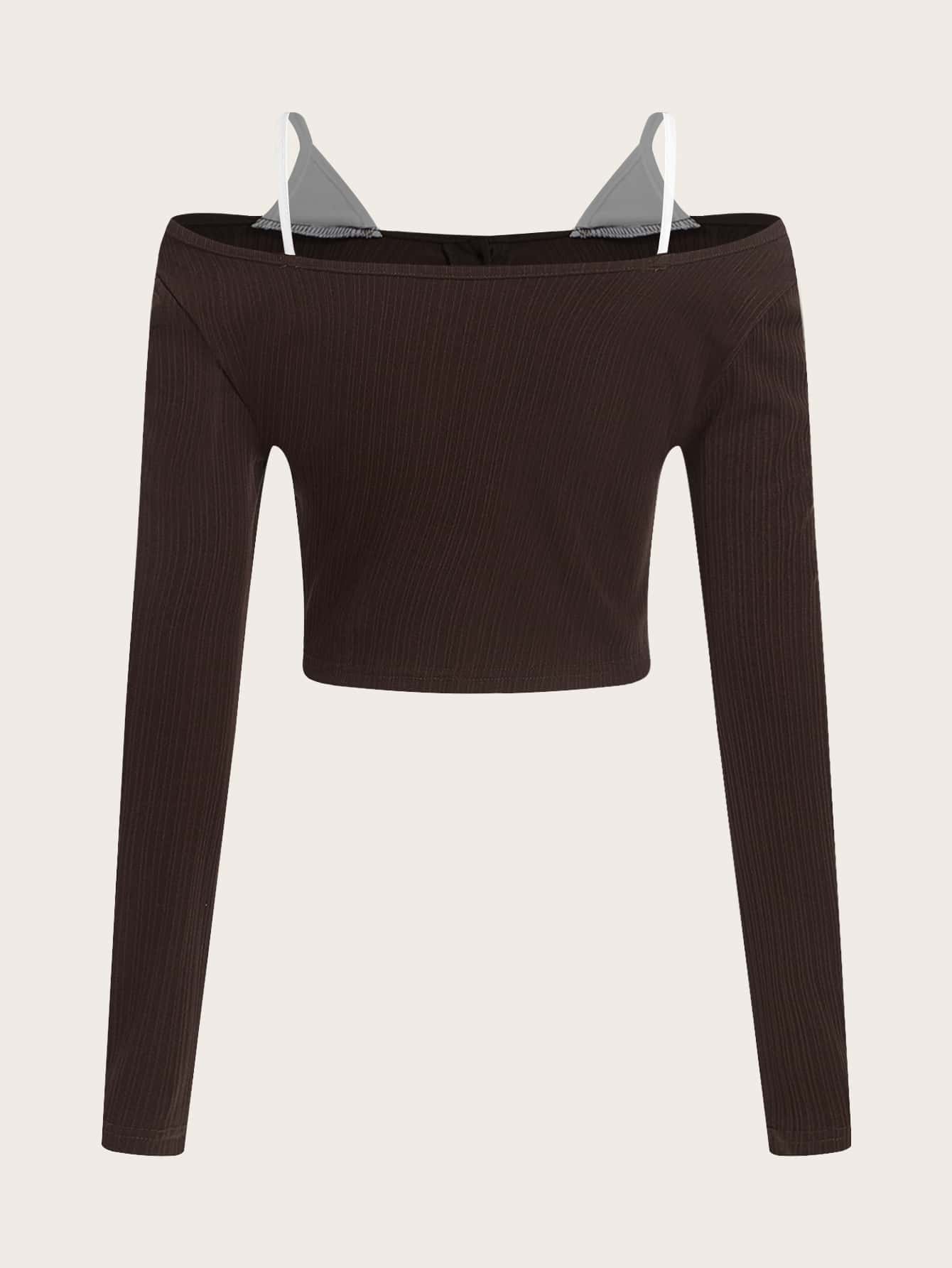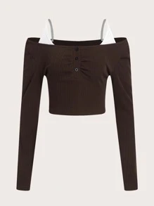 T-shirt 2 en 1 à épaules dénudées côtelé