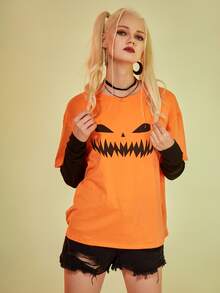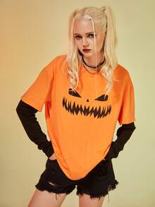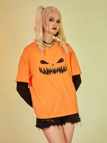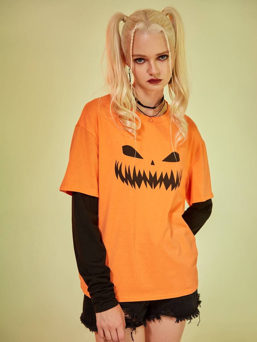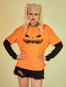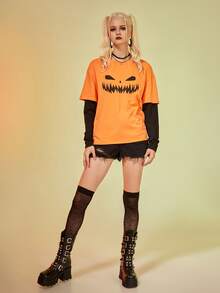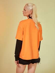 T-shirt 2 en 1 à motif halloween à blocs de couleurs