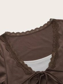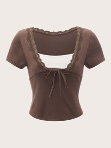 T-shirt 2 en 1 ourlet en dentelle