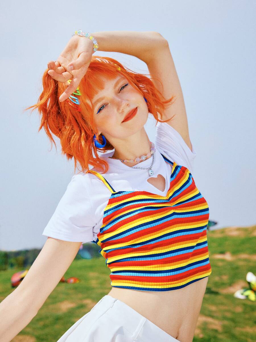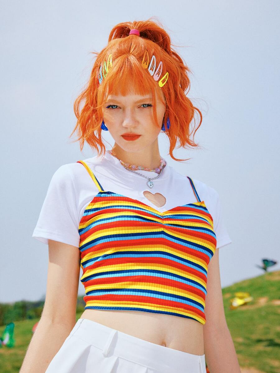 T-shirt 2 en 1 arc-en-ciel cœur découpe