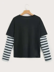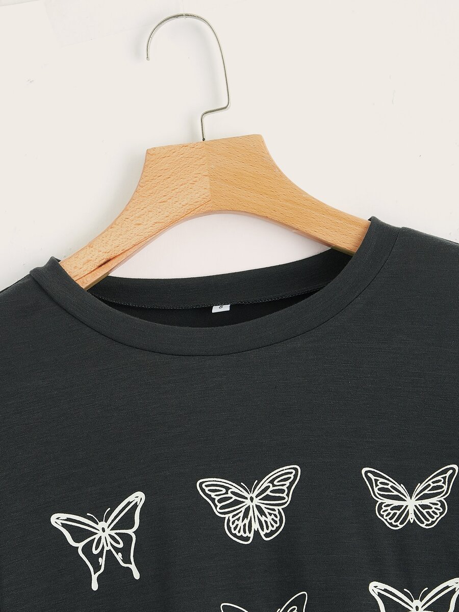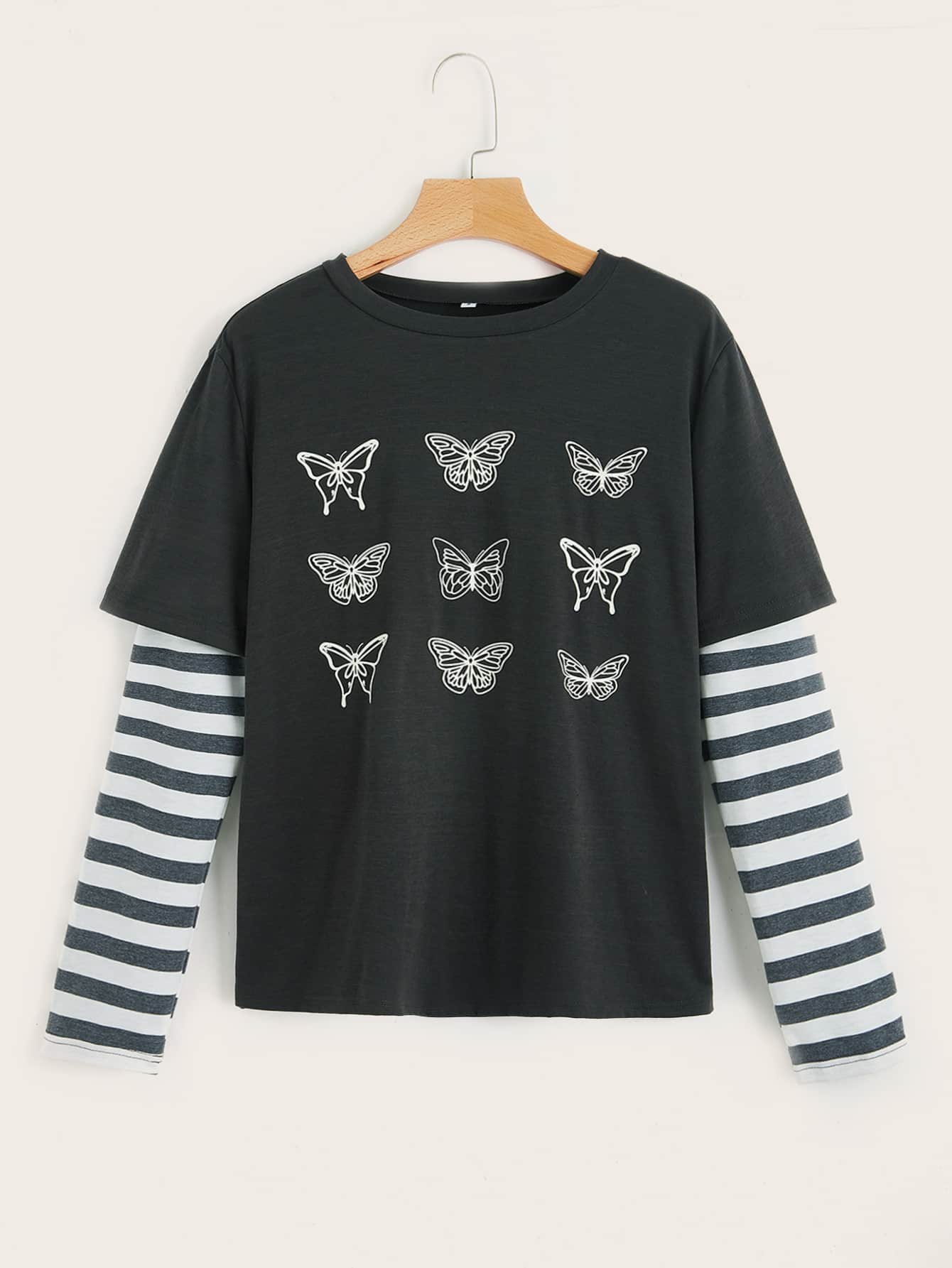 T-shirt 2 en 1 à rayures à imprimé papillon