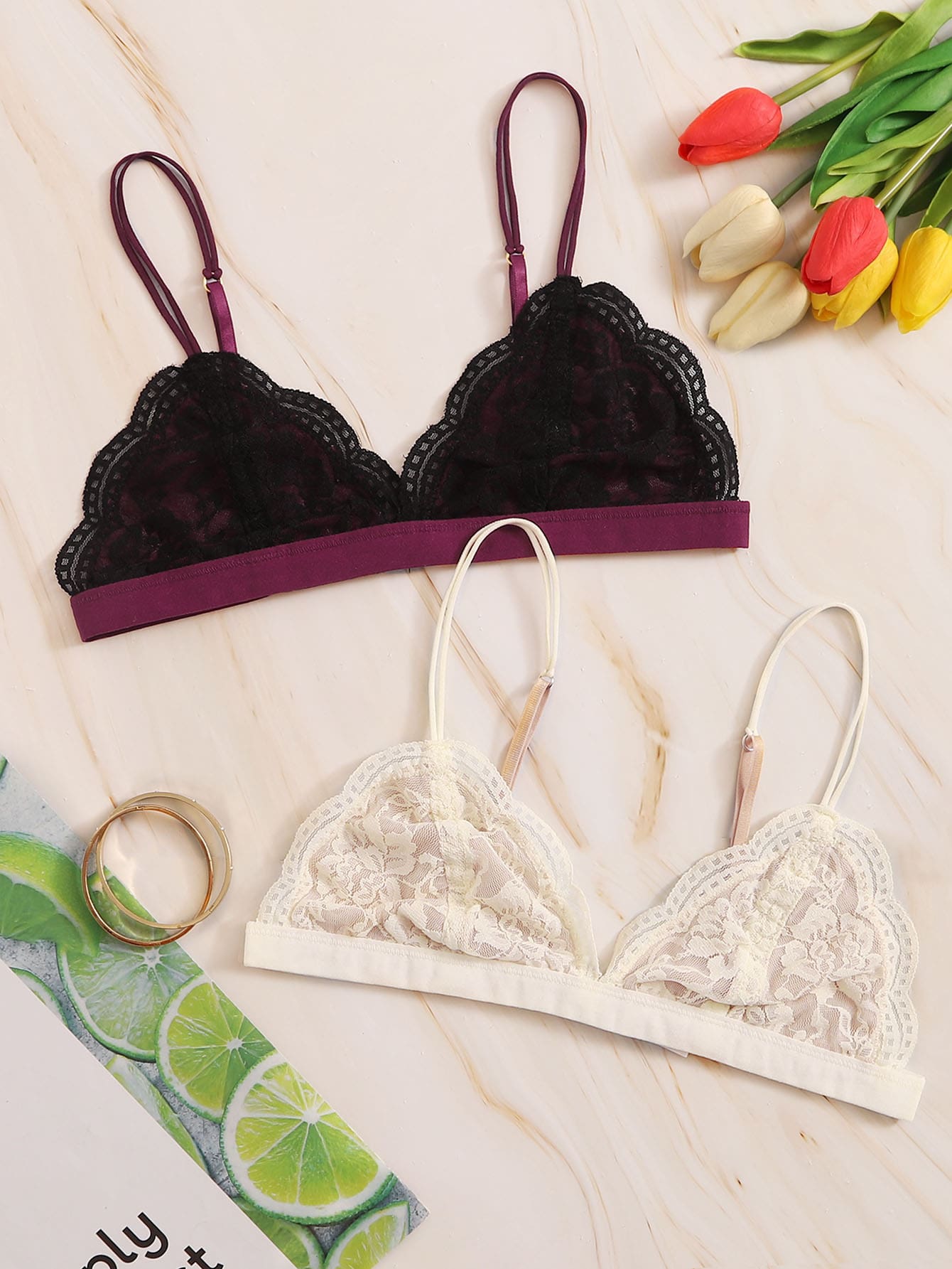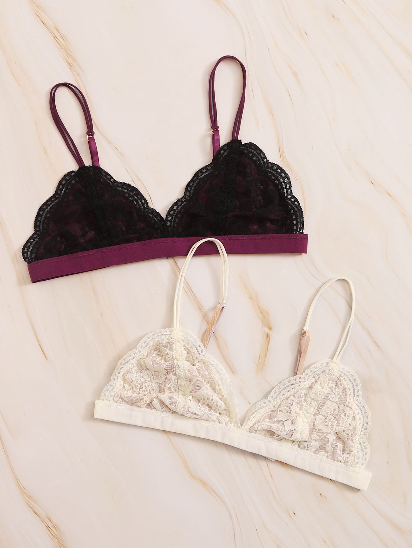 2 paquets de soutien-gorge avec dentelle en coquillage