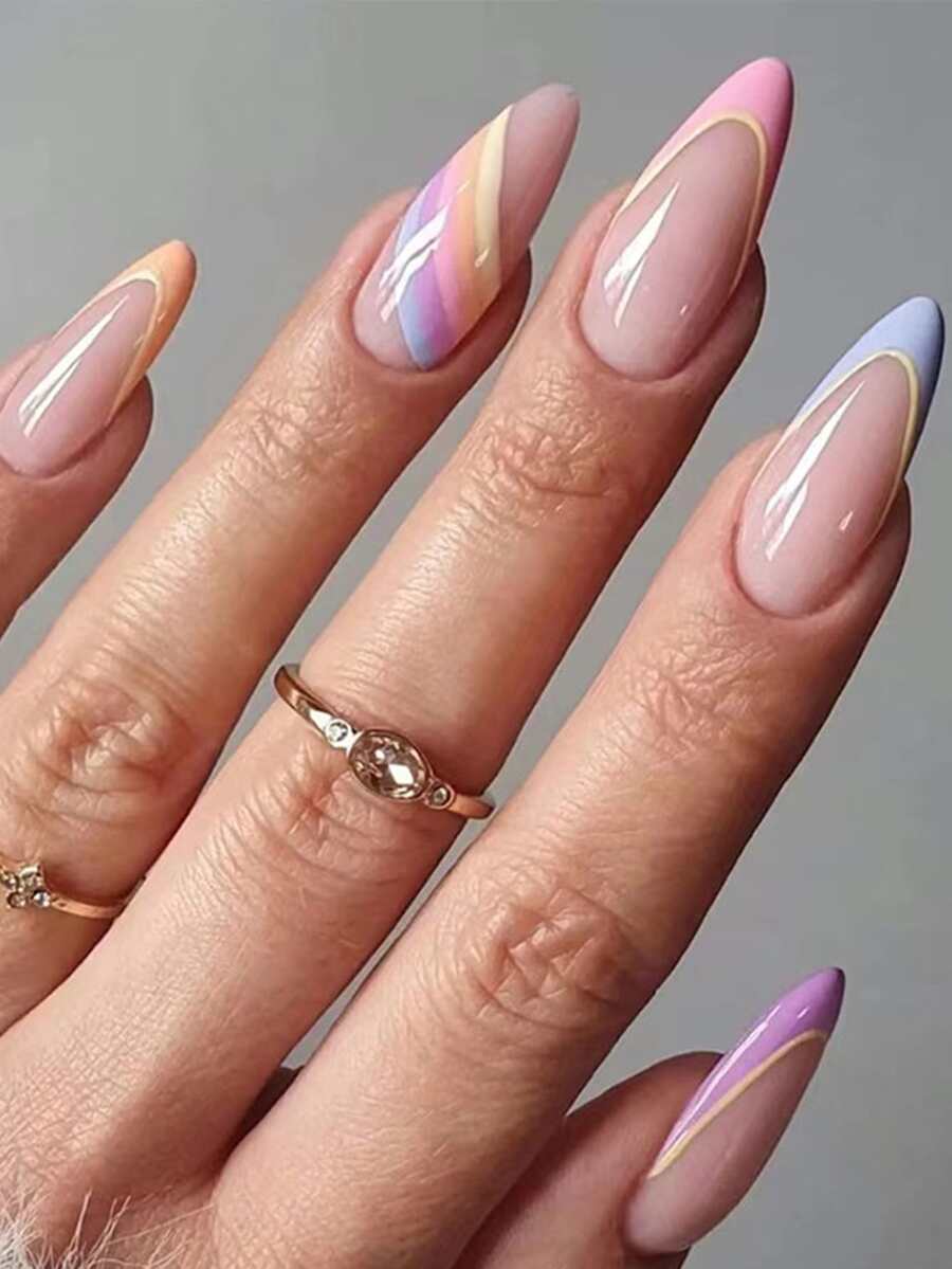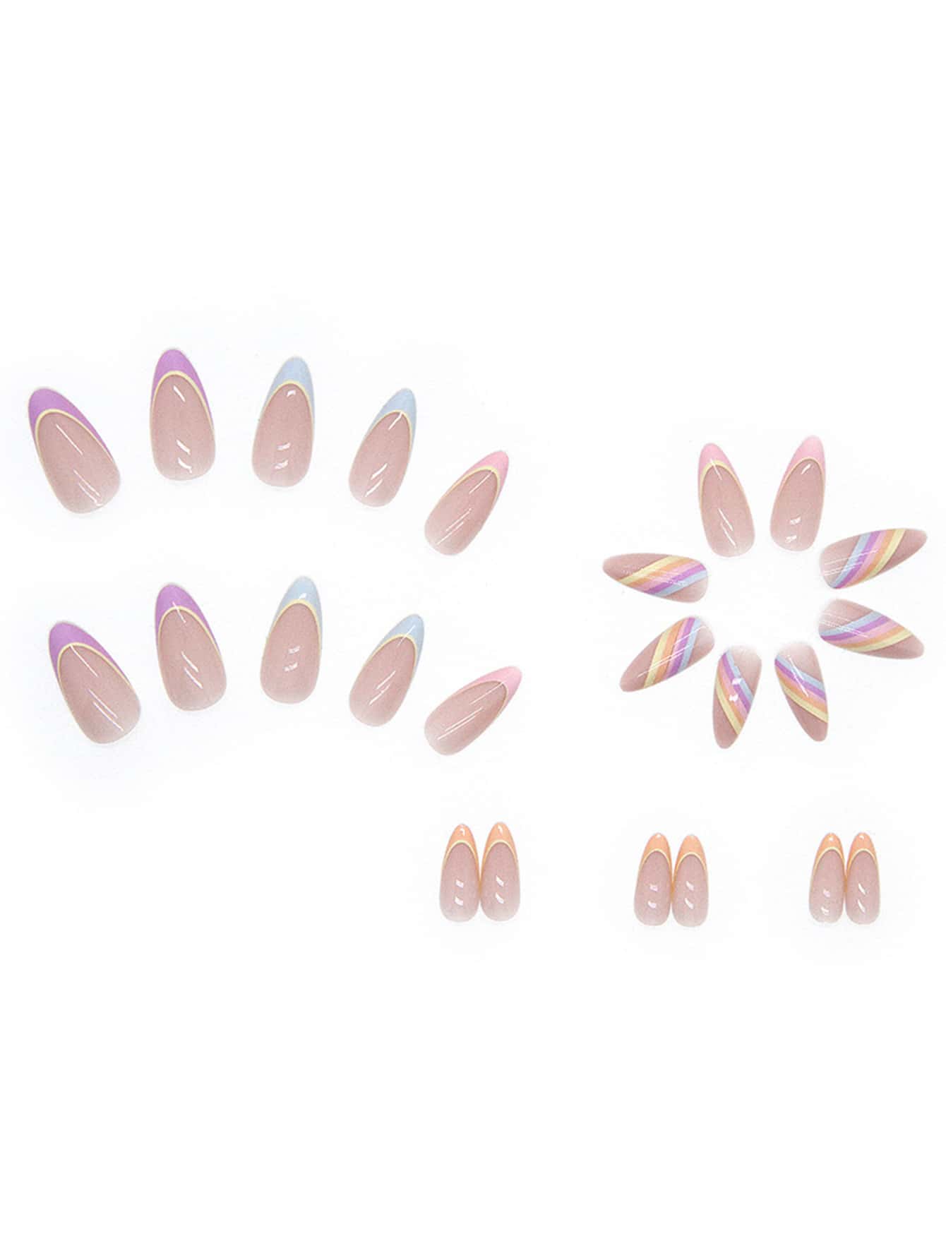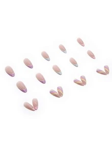 24 pièces à blocs de couleurs Faux ongles & 1 feuille ongle ruban