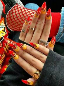 24 pièces Faux ongle avec flamme