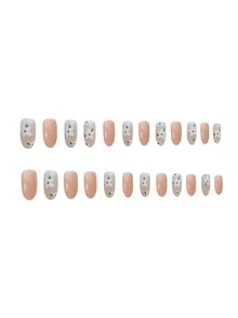 24 pièces avec motif fleur Faux ongles & 1 feuille ruban