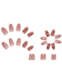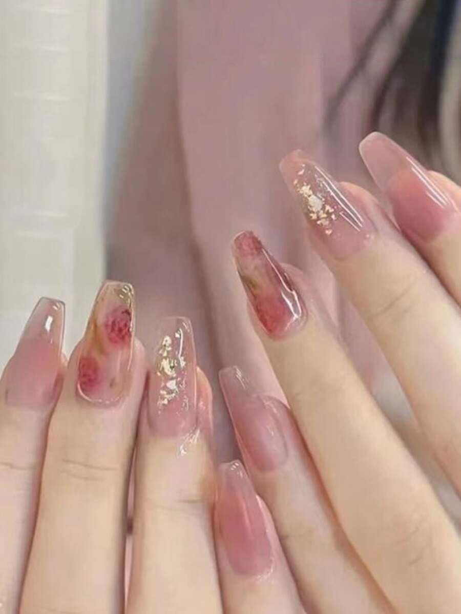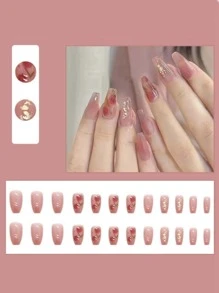 24 pièces Faux ongles à motif fleur