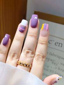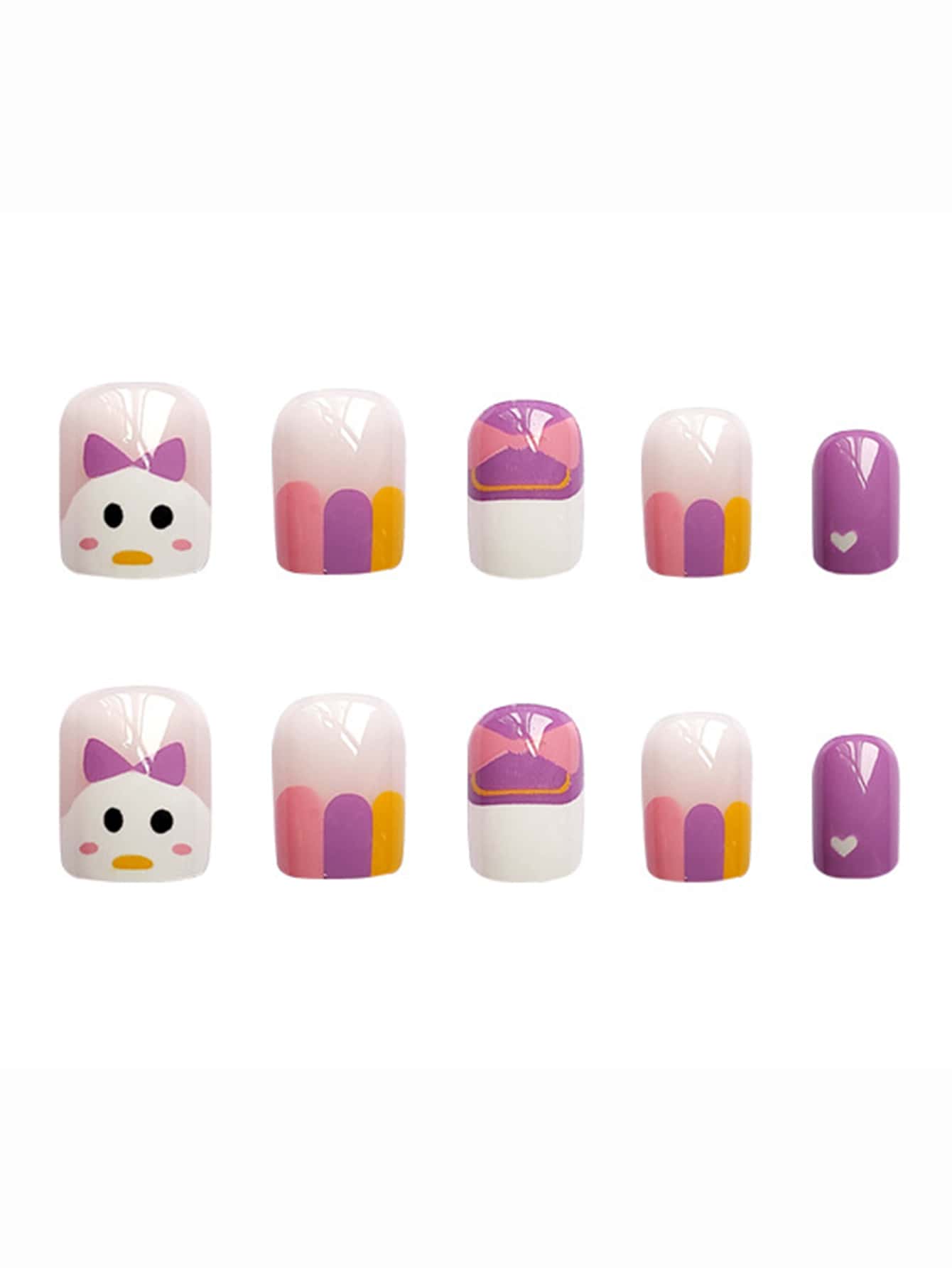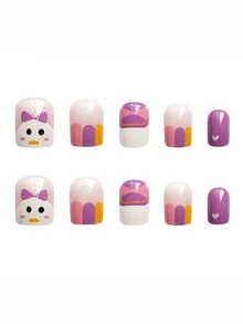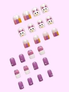 24 pièces Faux ongles long carré dessin animé