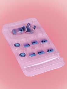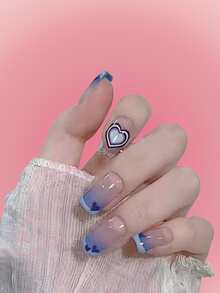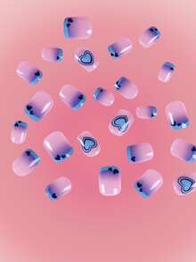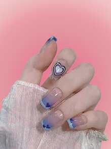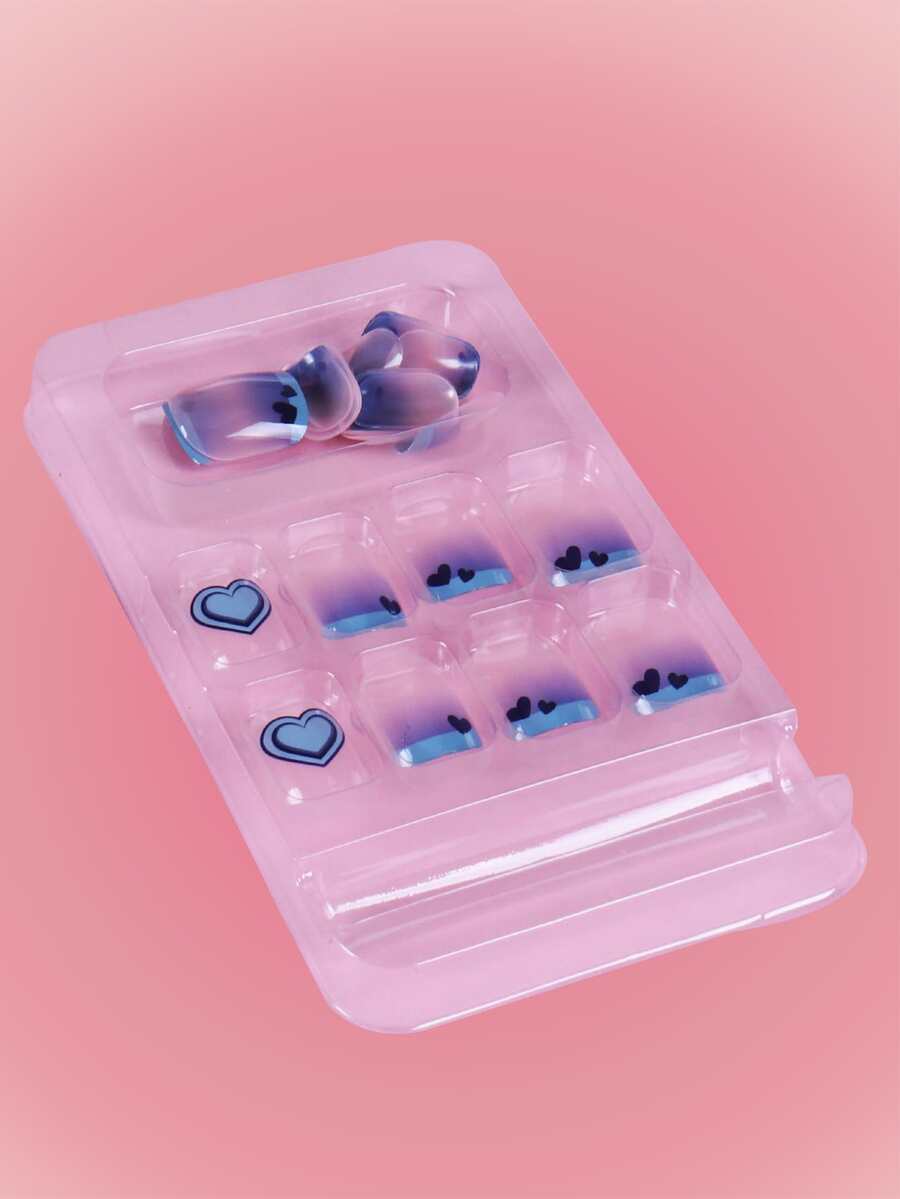 24 pièces Faux ongles long carré à imprimé cœur & 1 feuille Ruban