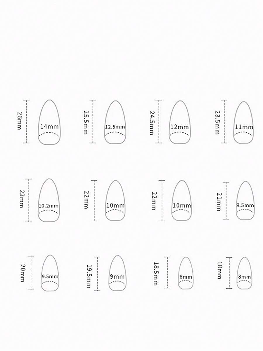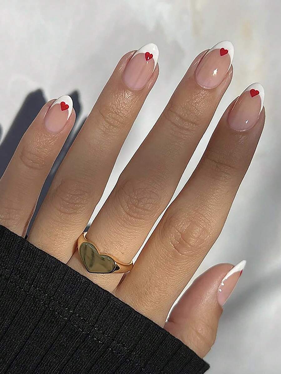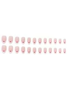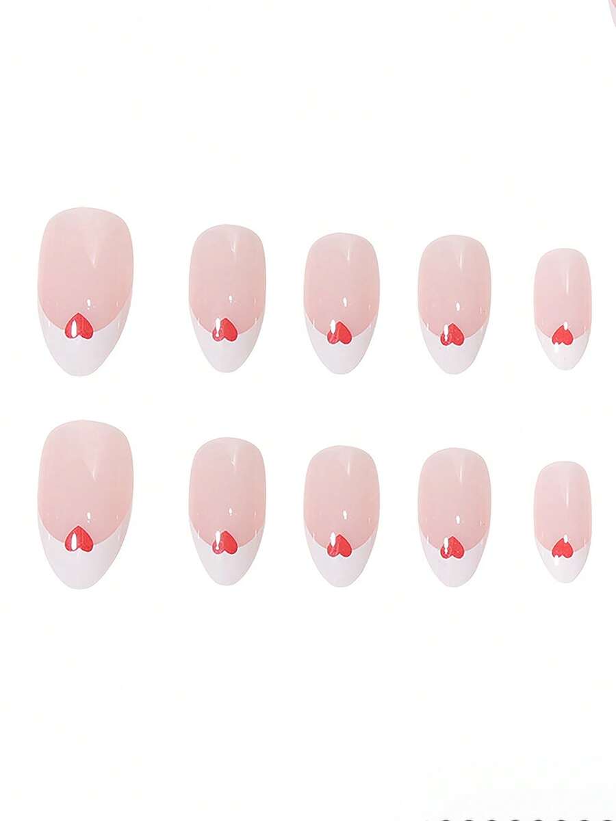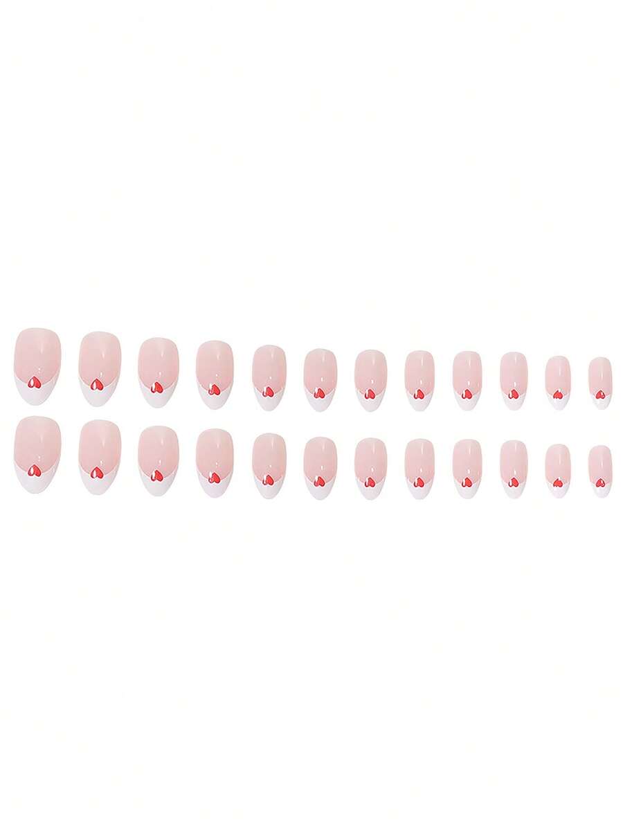 24 pièces court amande avec motif cœur Faux ongles & 1 feuille ruban