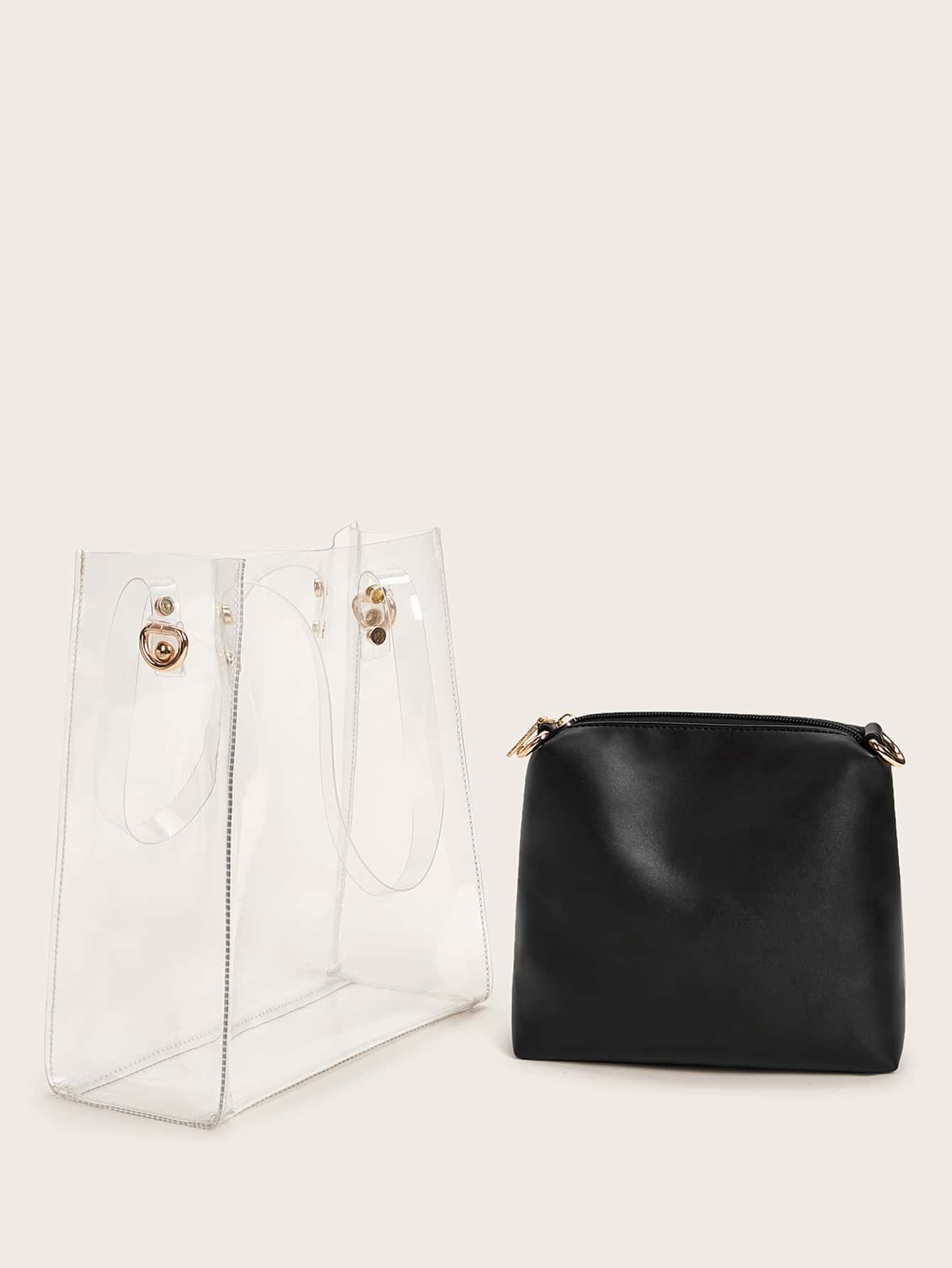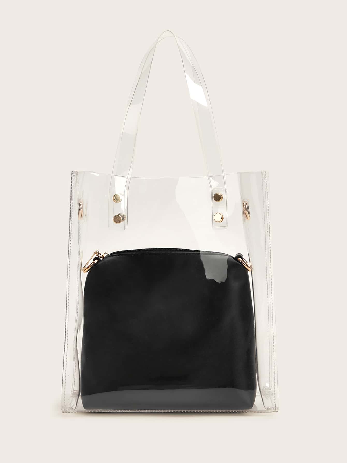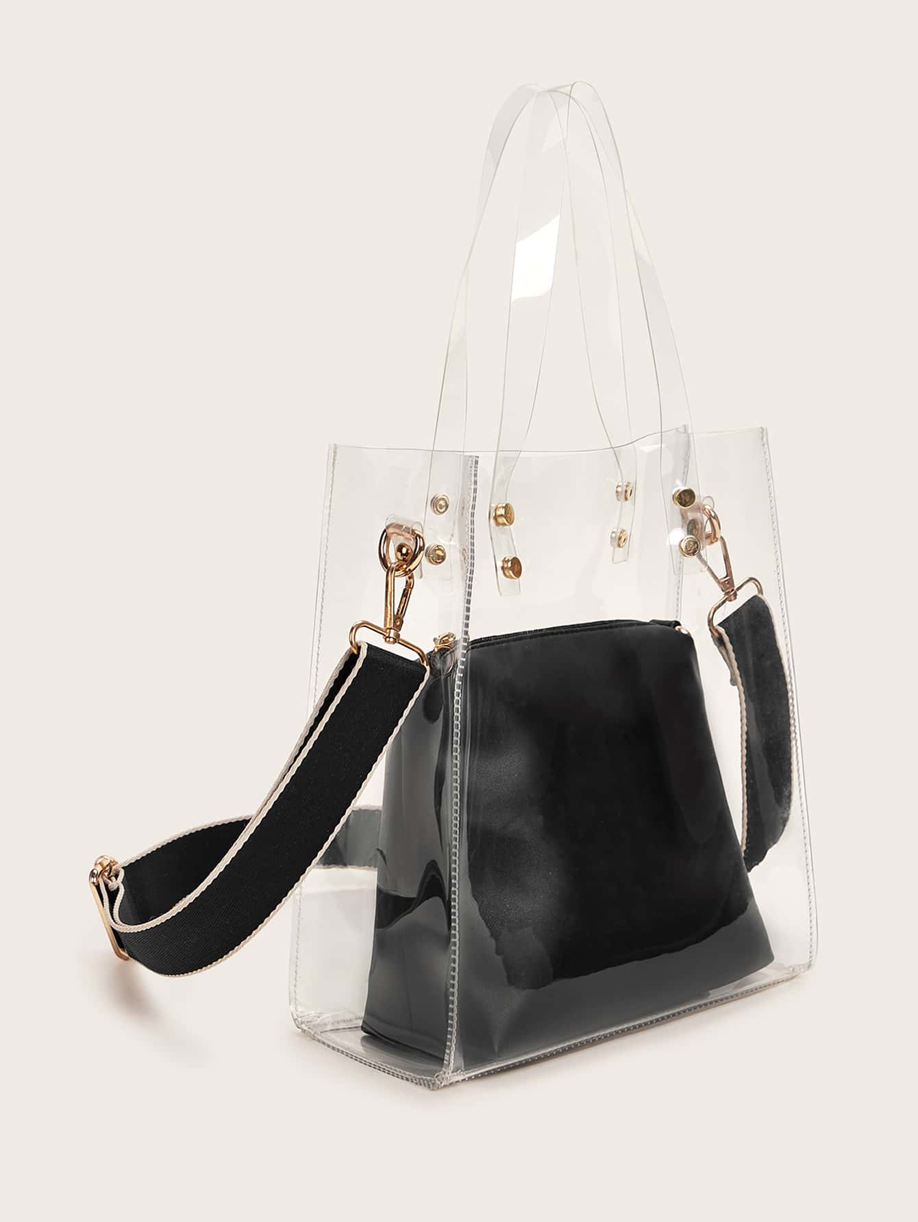 2 pièces Sac fourre-tout transparent avec pochette intérieure