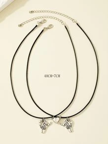 2 pièces Collier couple squelette main & magnétique à breloque cœur