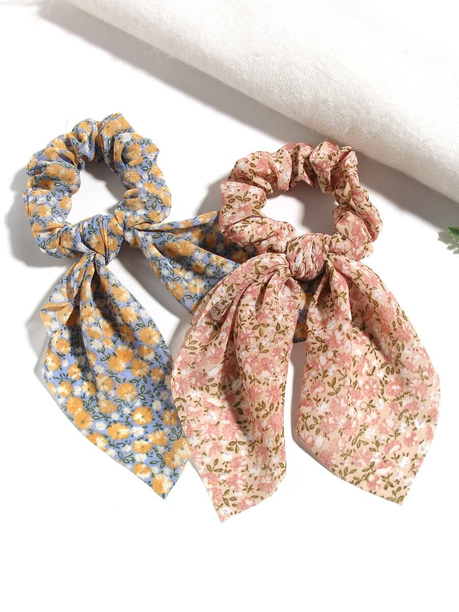 2 pièces Élastique avec foulard pour cheveux à imprimé floral