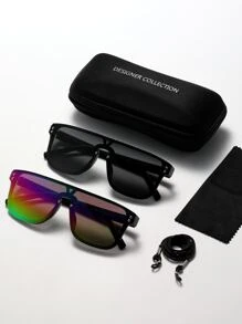 2 pièces Homme à sommet plat Lunettes de mode avec Corde des lunettes