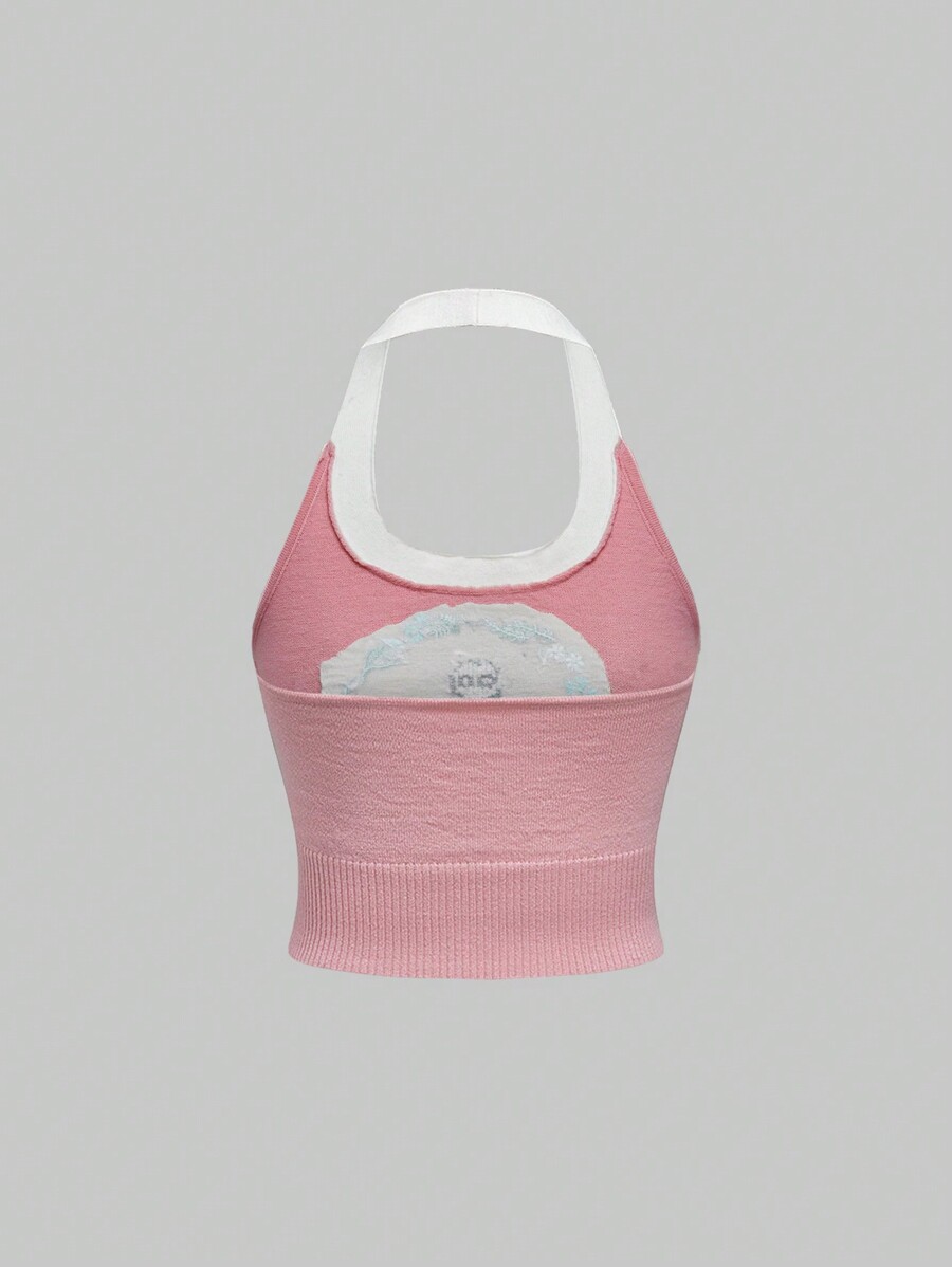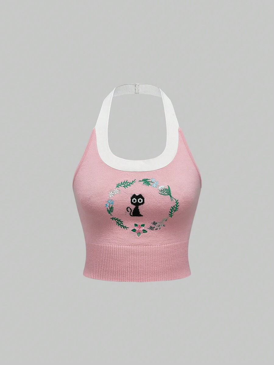 Sweetness 2 pièces Ensemble de gilet tricoté sans manches avec broderie de chat doux pour femmes
