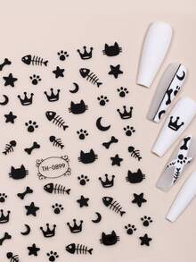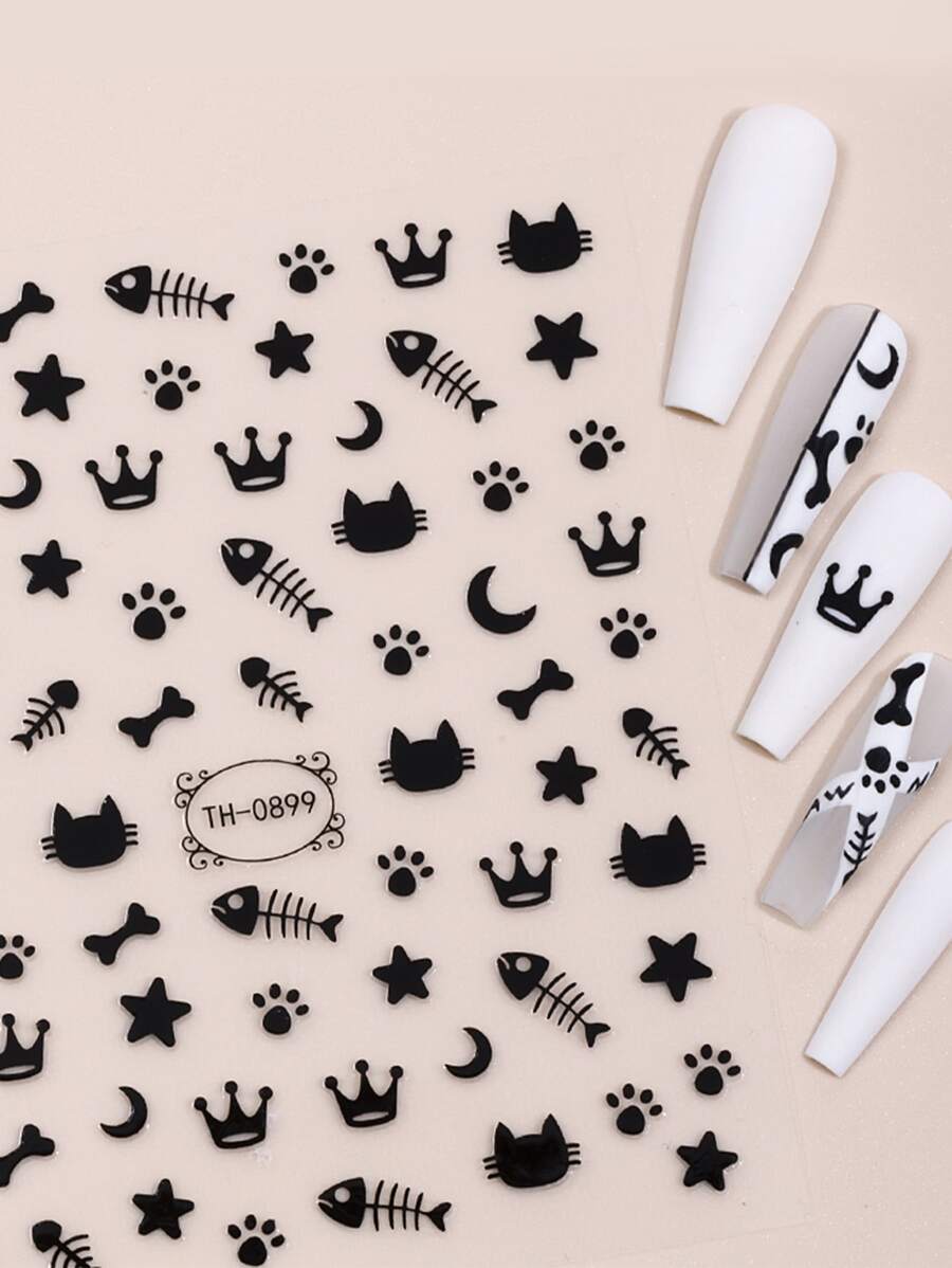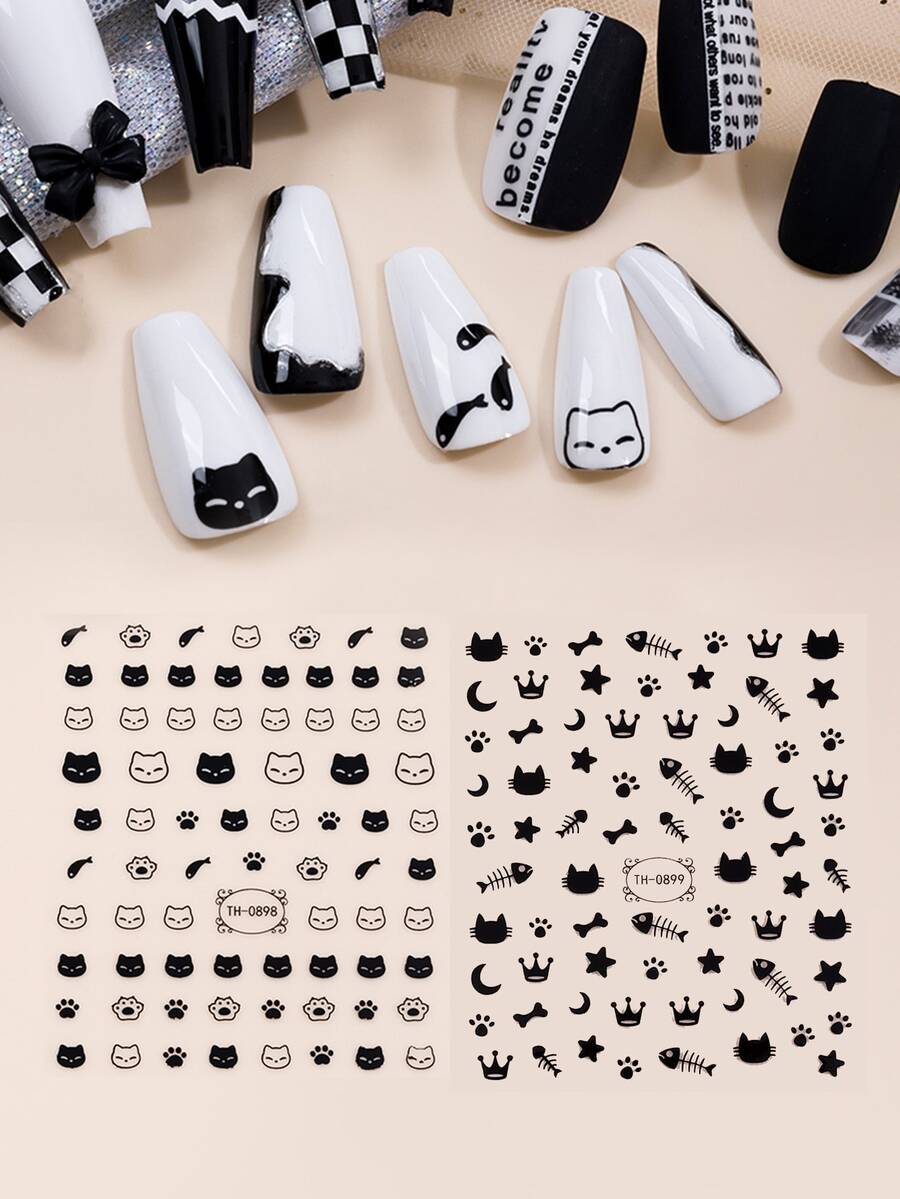 2 feuilles Autocollant à Nail Art chat et étoile