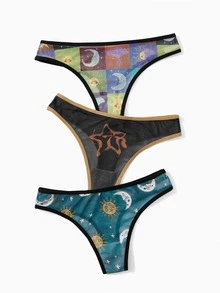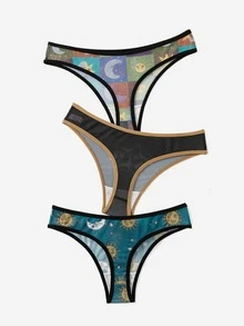 3 pièces Set de culottes dessin animé à liseré contrastant