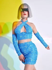 3 pièces Haut de bikini ras-du-cou découpe & manches détachable