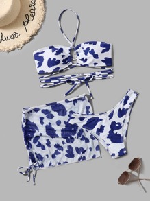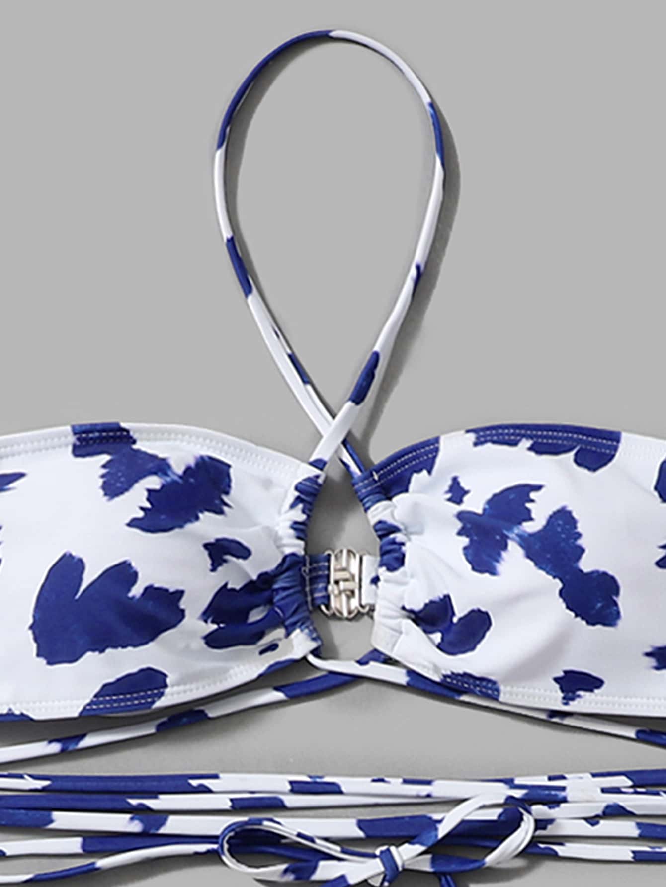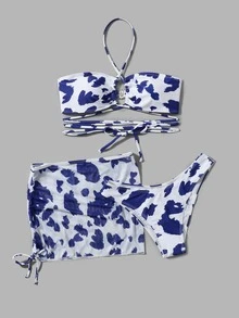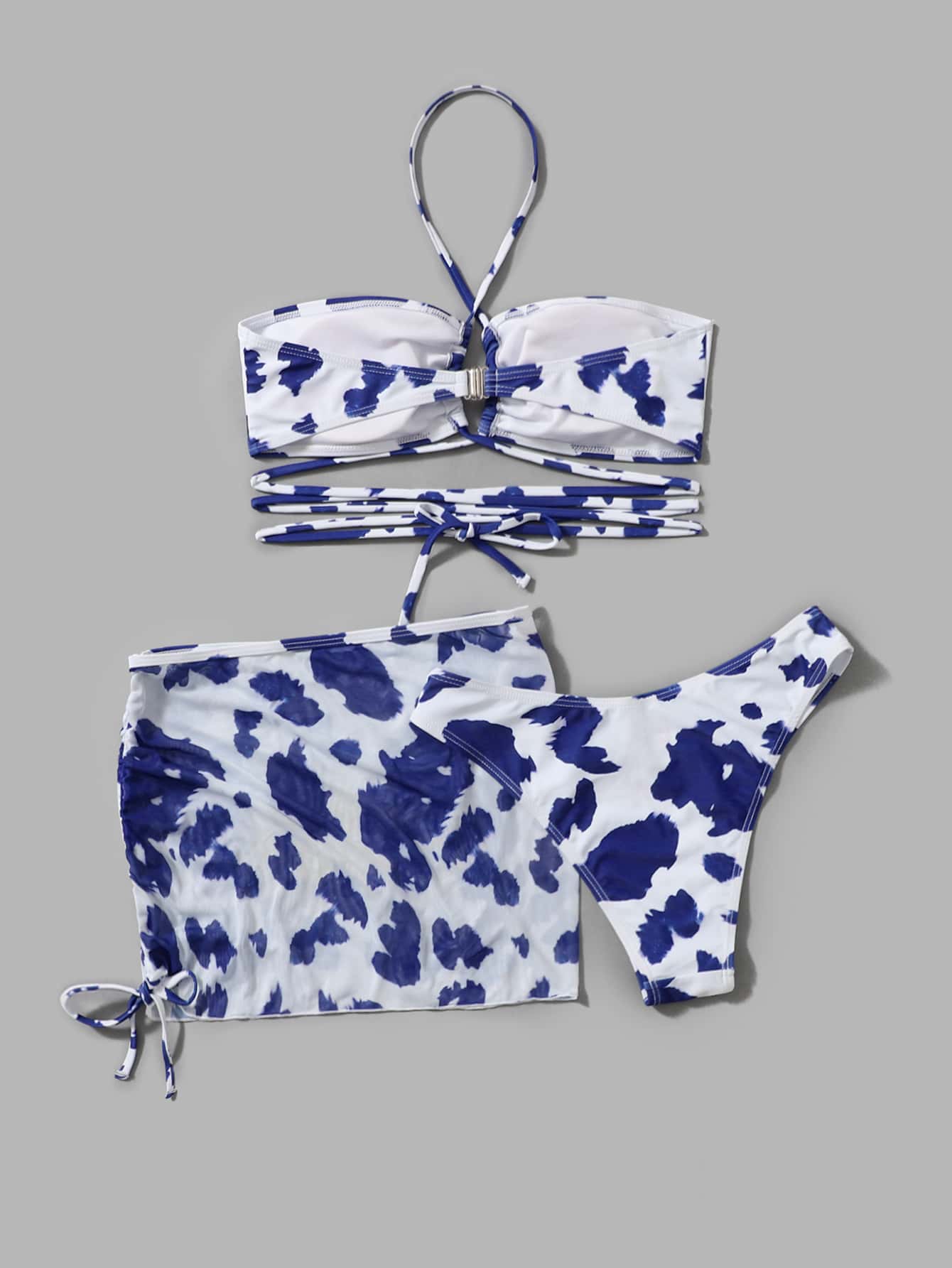 Ensemble bikini ras-du-cou à anneaux et jupe de plage en 3 packs
