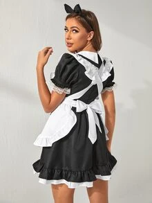 3 pièces Robe costume déguisement de soubrette avec plis et bandeau