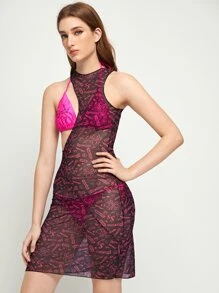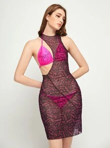 Ensemble bikini graphique avec squelette en 3 paquets avec cache-maillot