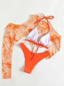 3 packs Ensemble de bikini triangle micro tie-dye et cache-maillot, pour les vacances d'été à la plage