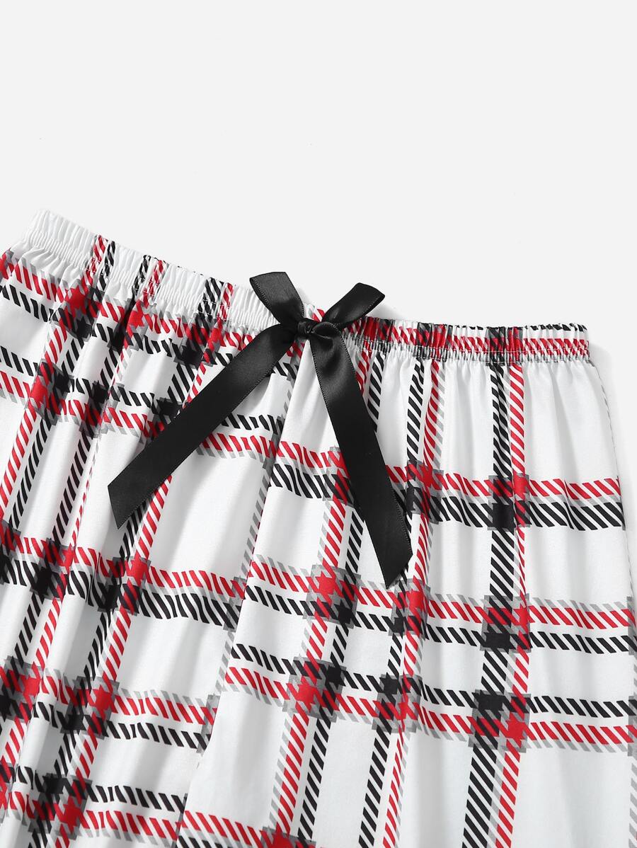 3 pièces Ensemble pyjama avec nœud à carreaux