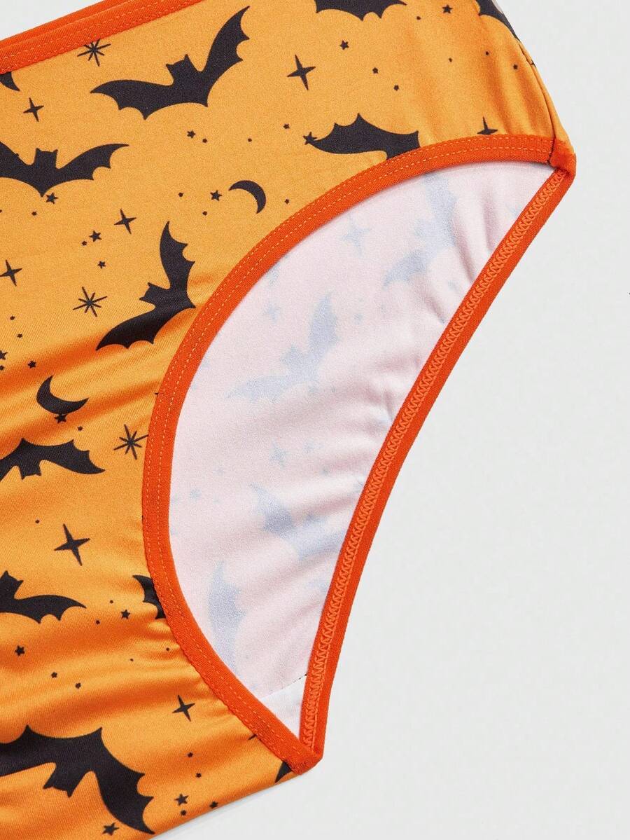 3 pièces/set Culottes pour femmes avec imprimé gothique de chauve-souris, crâne et squelette, thème Halloween