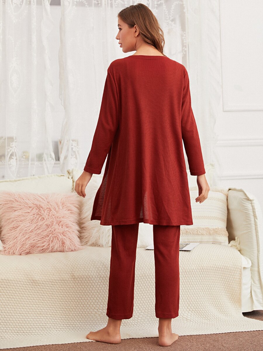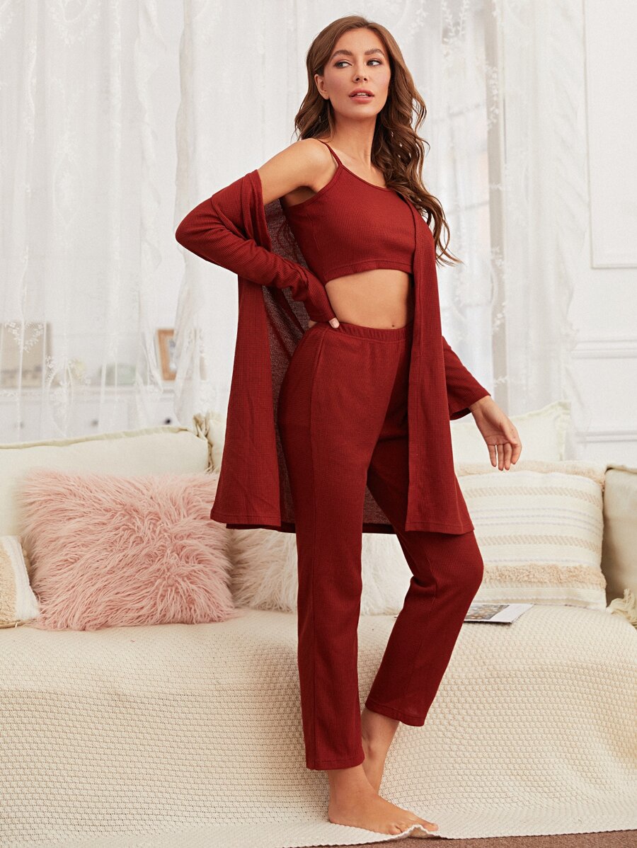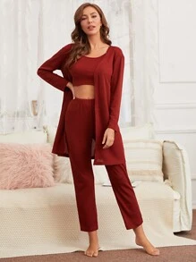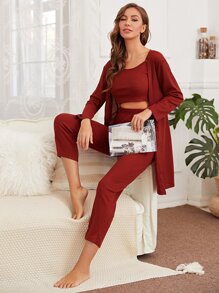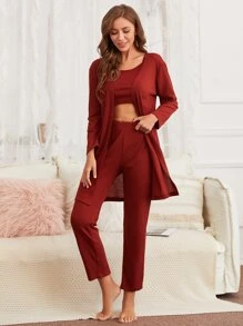 3 pièces Ensemble de pyjama unicolore & peignoir