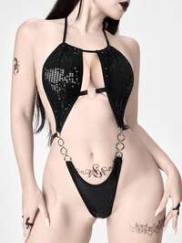 Goth Body sexy pour femmes avec décorations de strass et laçage croisé sur les côtés