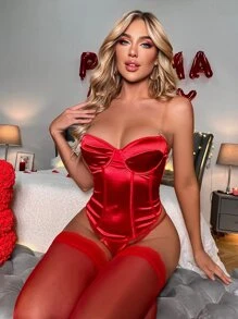 4 pièces Ensemble de lingerie unicolore à armature avec 1 paire bas & bande transparente