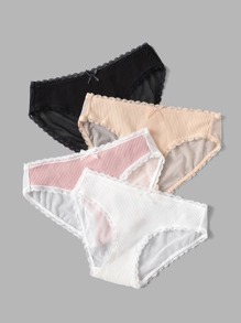 4 pièces Ensemble slip à nœud papillon ourlet en dentelle