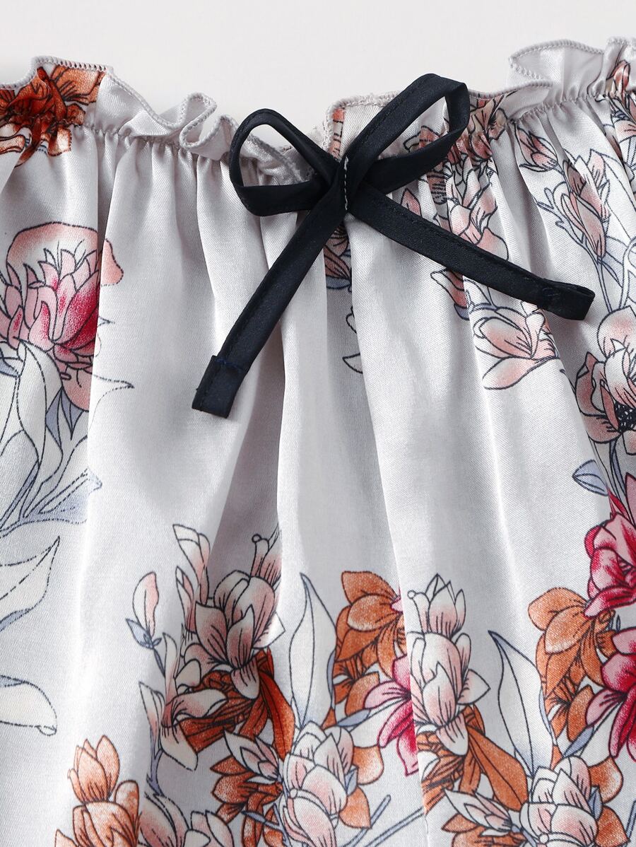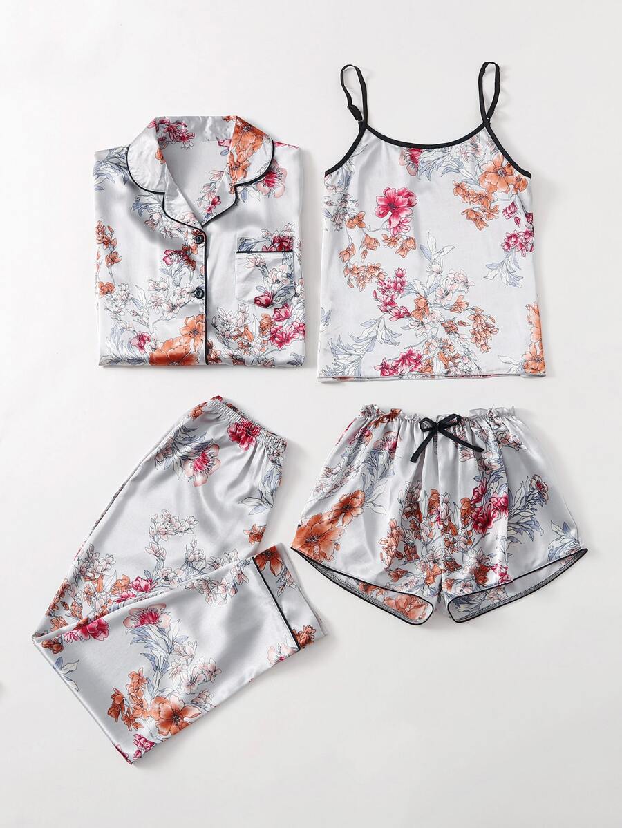 Ensemble de pyjama en satin à imprimé floral 4 pièces