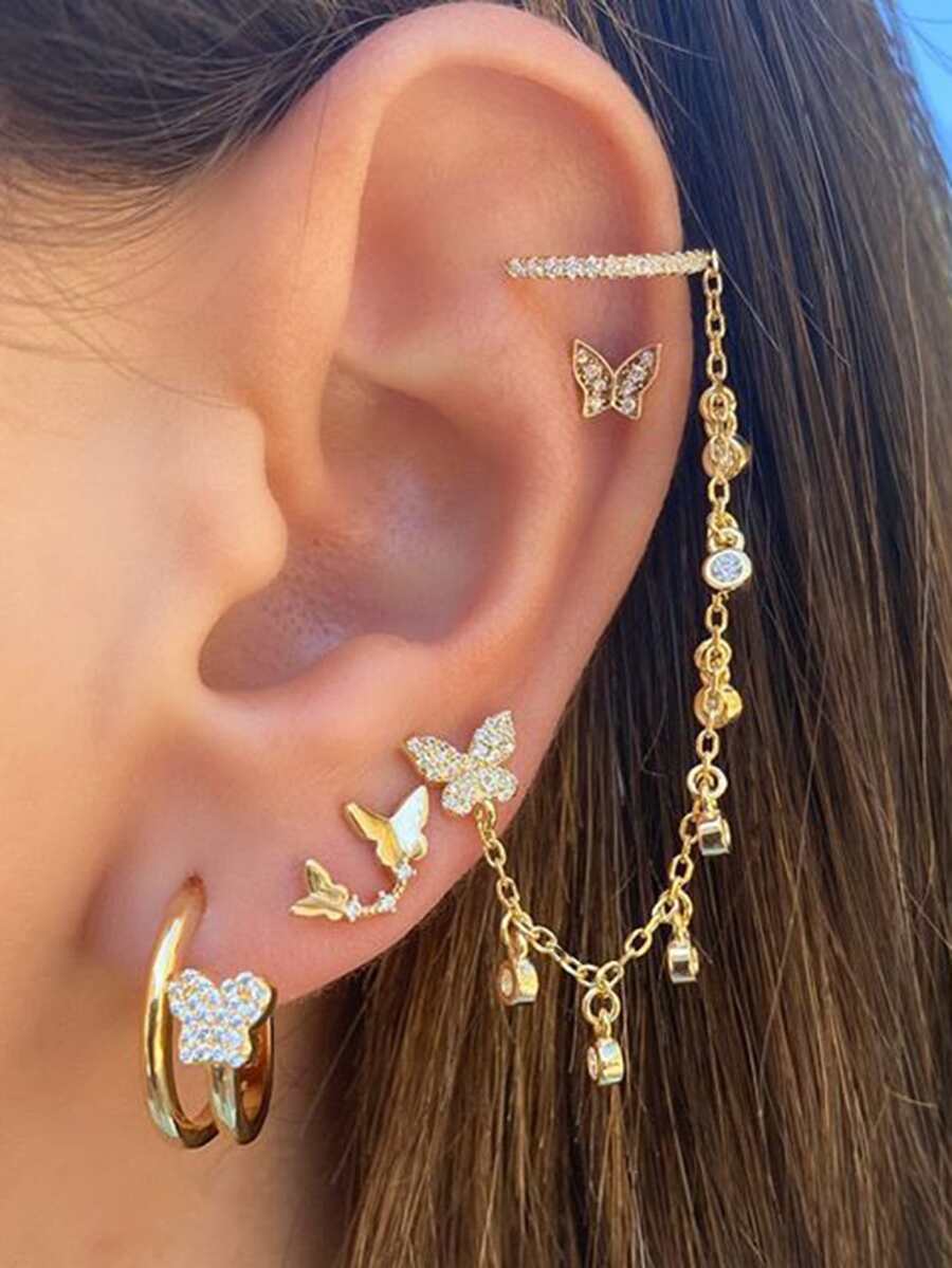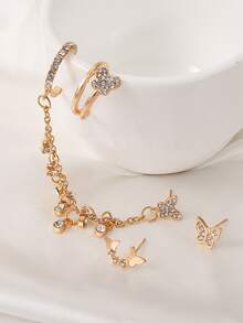4 pièces Boucles d'oreilles avec papillon à strass