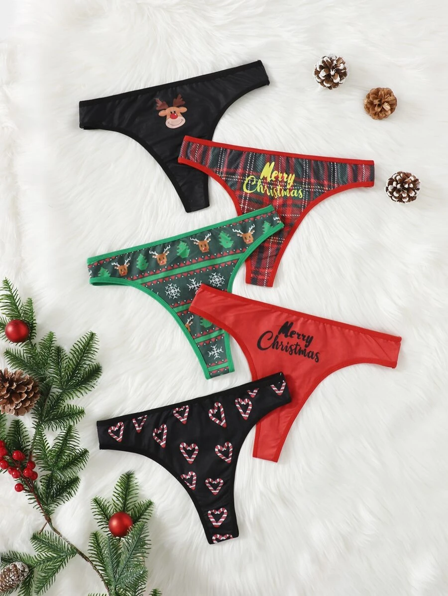 5 pièces Set de culottes à imprimé Noël