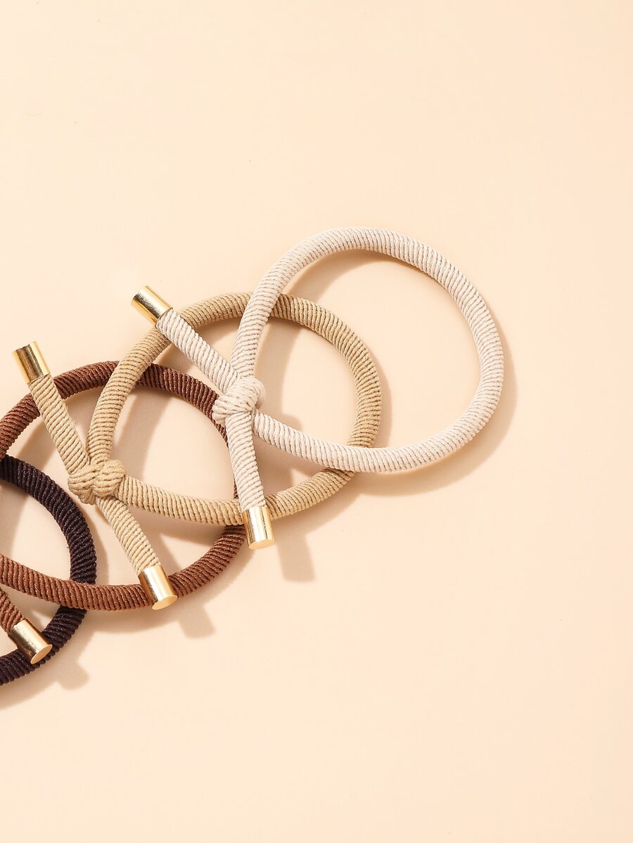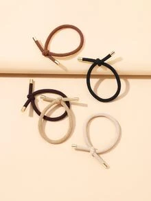 5 pièces Attache de cheveux décorative nouée, support de queue de cheval décontracté, élastique à cheveux